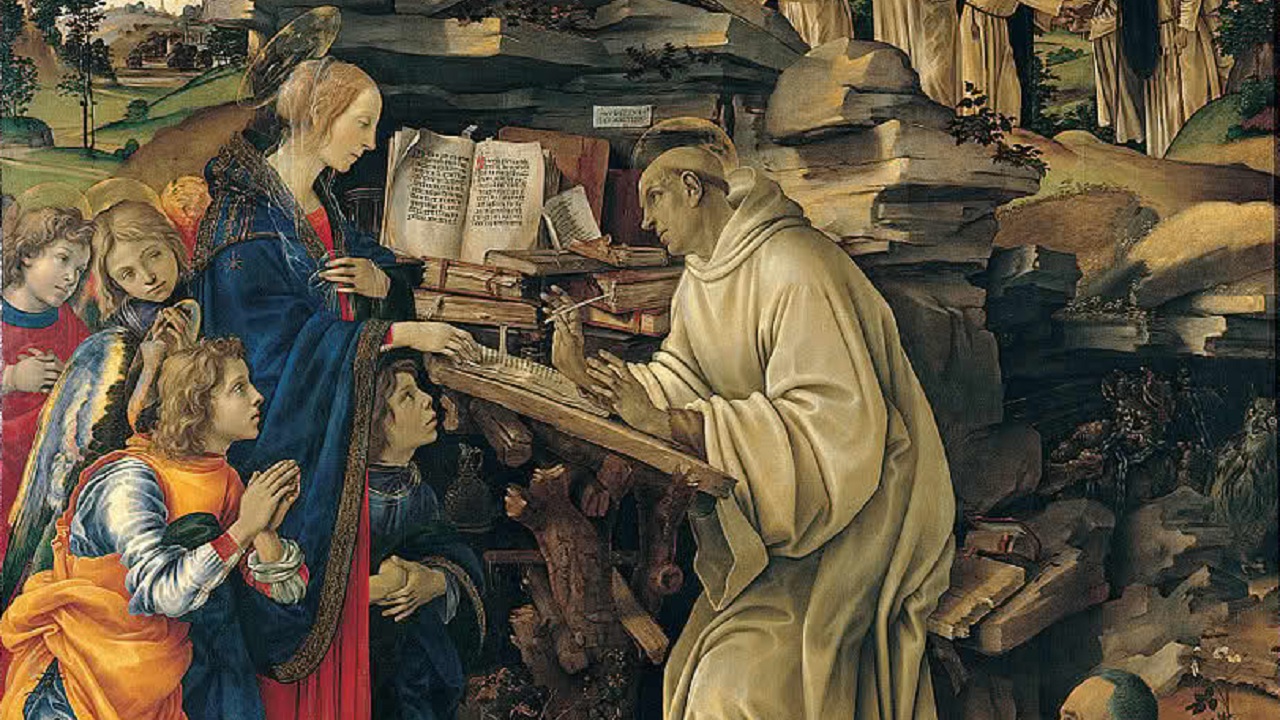 Bernardo (1090–1153), abade cisterciense, místico, pregador incansável, reformador e conselheiro de papas e reis, foi uma das figuras mais influentes do seu tempo. A sua eloquência, o seu zelo pela reforma e a sua teologia centrada no amor místico valeram-lhe o título de Doctor Mellifluus (“Doutor Melífluo” ou “que destila mel”).